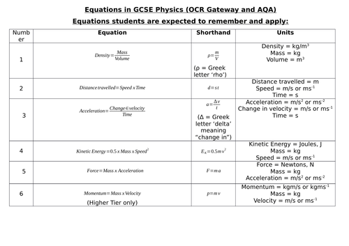 Ocr Gateway Physics Equations